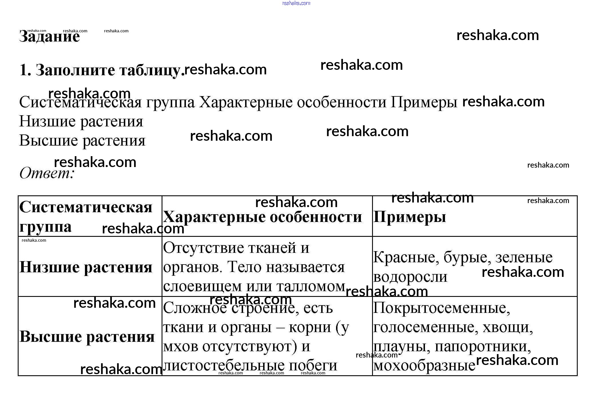 Представляем вам сборники по Биологии, с готовыми ответами к Учебнику Пасечник школьной программы для учеников седьмой класса. Это не просто гдз с ответом, а с подсказками, как верно решить Задание §1. Систематика растений 1. Проверяй домашку с умом и получай высший балл!