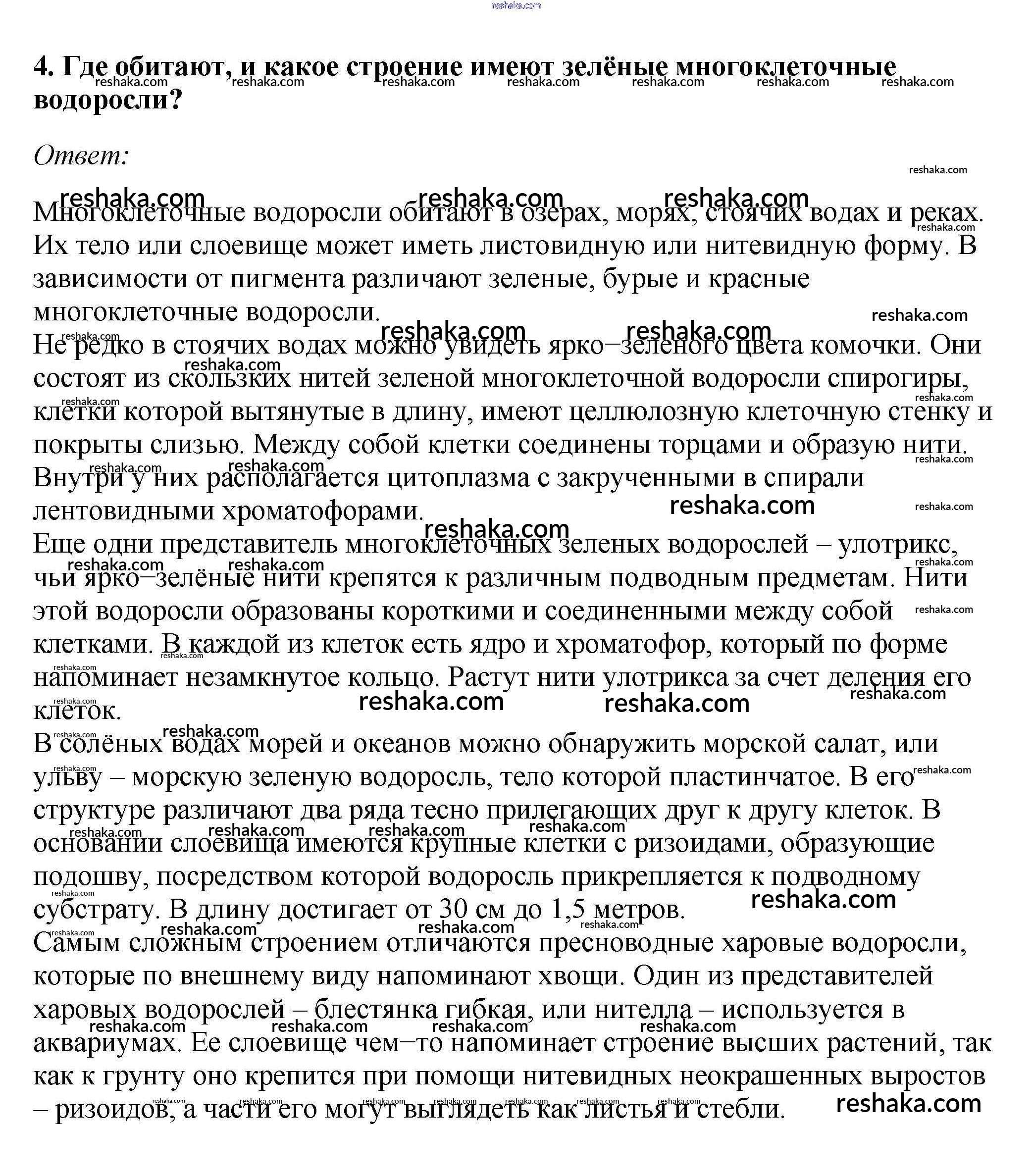 Представляем вам сборники по Биологии, с готовыми ответами к Учебнику Пасечник школьной программы для учеников седьмой класса. Это не просто гдз с ответом, а с подсказками, как верно решить Вопросы §2. Группа отделов Водоросли 4. Проверяй домашку с умом и получай высший балл!