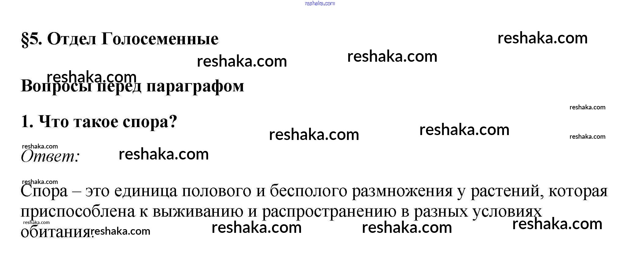 Представляем вам сборники по Биологии, с готовыми ответами к Учебнику Пасечник школьной программы для учеников седьмой класса. Это не просто гдз с ответом, а с подсказками, как верно решить Вопросы перед параграфом §5. Отдел Голосеменные 1. Проверяй домашку с умом и получай высший балл!