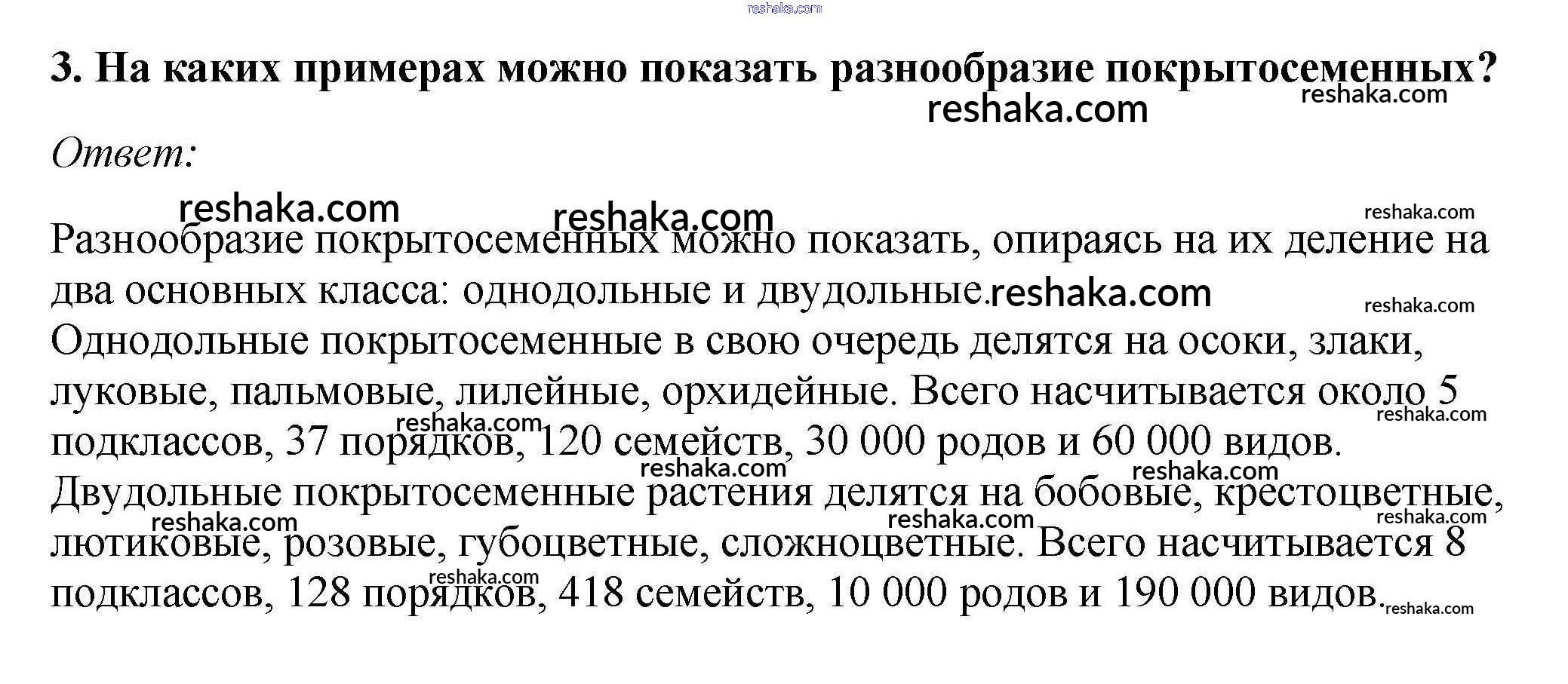 Представляем вам сборники по Биологии, с готовыми ответами к Учебнику Пасечник школьной программы для учеников седьмой класса. Это не просто гдз с ответом, а с подсказками, как верно решить Вопросы §6. Отдел Покрытосеменные, или Цветковые 3. Проверяй домашку с умом и получай высший балл!