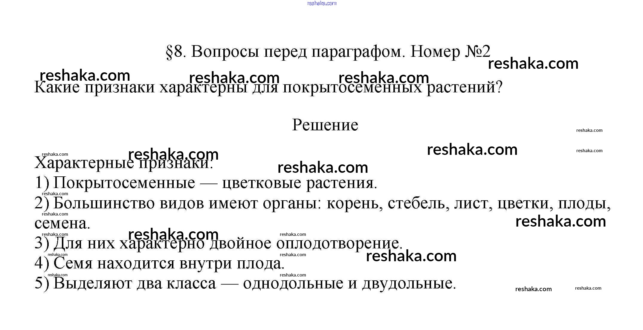 Представляем вам сборники по Биологии, с готовыми ответами к Учебнику Пасечник школьной программы для учеников седьмой класса. Это не просто гдз с ответом, а с подсказками, как верно решить Вопросы перед параграфом §8. Основы классификации покрытосеменных растений 2. Проверяй домашку с умом и получай высший балл!