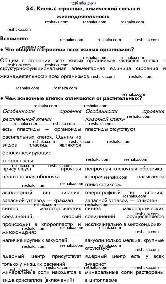 Решака - онлайн ответы Биология Драгомилов, Маш за 8 класс Учебник ФГОС 2022 - Вспомним