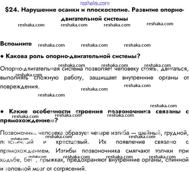 Представляем вам сборники по Биологии, с готовыми ответами к Учебнику Драгомилов школьной программы для учеников восьмой класса. Это не просто гдз с ответом, а с подсказками, как верно решить §24. Нарушение осанки и плоскостопие. Развитие опорнодвигательной системы Глава 4. Опорно-двигательная система Вспомним. Проверяй домашку с умом и получай высший балл!