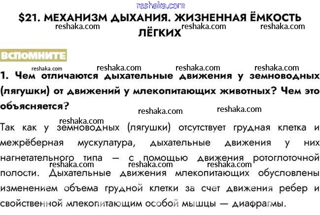 Представляем вам сборники по Биологии, с готовыми ответами к Учебнику Пасечник школьной программы для учеников восьмой класса. Это не просто гдз с ответом, а с подсказками, как верно решить Вспомните §21. Механизм дыхания. Жизненная ёмкость лёгких 1. Проверяй домашку с умом и получай высший балл!