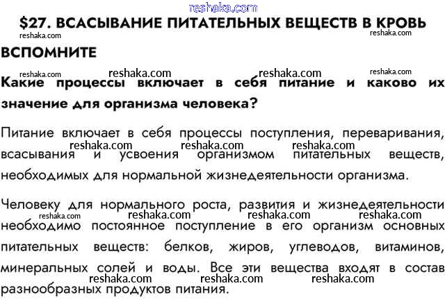 Представляем вам сборники по Биологии, с готовыми ответами к Учебнику Пасечник школьной программы для учеников восьмой класса. Это не просто гдз с ответом, а с подсказками, как верно решить Вспомните §27. Всасывание питательных веществ в кровь 1. Проверяй домашку с умом и получай высший балл!