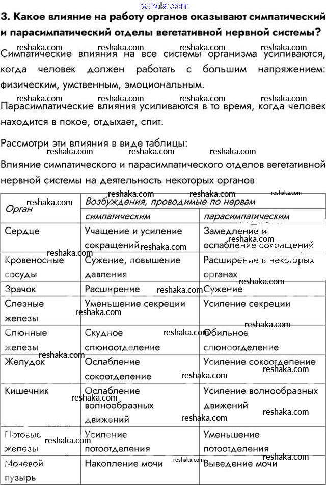 Представляем вам сборники по Биологии, с готовыми ответами к Учебнику Пасечник школьной программы для учеников восьмой класса. Это не просто гдз с ответом, а с подсказками, как верно решить Вопросы §43. Вегетативная нервная система 3. Проверяй домашку с умом и получай высший балл!