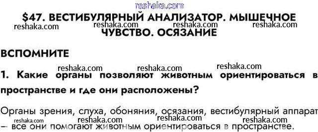 Представляем вам сборники по Биологии, с готовыми ответами к Учебнику Пасечник школьной программы для учеников восьмой класса. Это не просто гдз с ответом, а с подсказками, как верно решить Вспомните §47. Вестибулярный анализатор. Мышечное чувство. Осязание 1. Проверяй домашку с умом и получай высший балл!