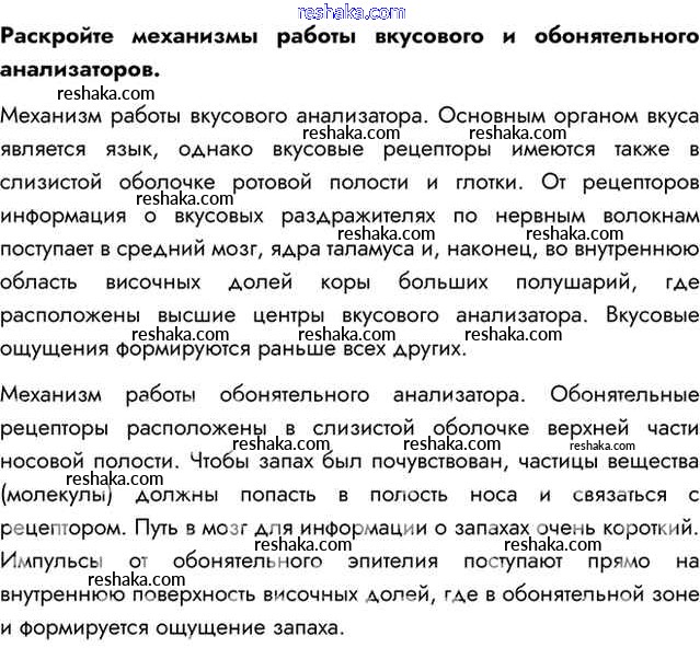 Представляем вам сборники по Биологии, с готовыми ответами к Учебнику Пасечник школьной программы для учеников восьмой класса. Это не просто гдз с ответом, а с подсказками, как верно решить Задания §48. Вкусовой и обонятельный анализаторы. Боль 1. Проверяй домашку с умом и получай высший балл!