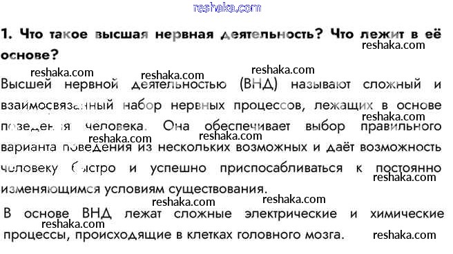 Представляем вам сборники по Биологии, с готовыми ответами к Учебнику Пасечник школьной программы для учеников восьмой класса. Это не просто гдз с ответом, а с подсказками, как верно решить Вопросы §49. Высшая нервная деятельность. Рефлексы 1. Проверяй домашку с умом и получай высший балл!