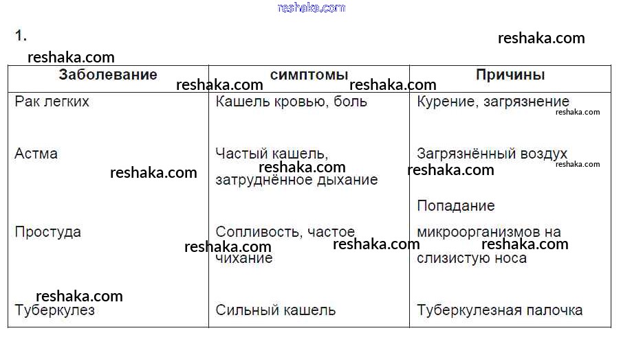 Решака - онлайн ответы Биология Пасечник, Швецов за 8 класс Рабочая тетрадь ФГОС 2019 - 1