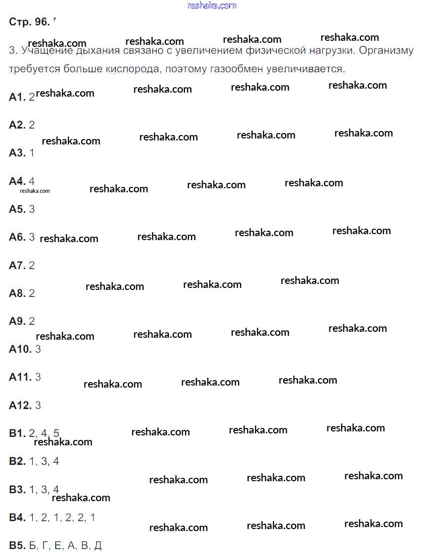 Решака - онлайн ответы Биология Сонин, Агафонова за 8 класс Рабочая тетрадь ФГОС 2017 - 96