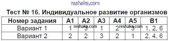 Решака - онлайн ответы Биология Богданов за 9 класс Контрольно-измерительные материалы (КИМ) ФГОС 2017 - Тест №16. Индивидуальное развитие организмов