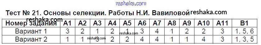 Решака - онлайн ответы Биология Богданов за 9 класс Контрольно-измерительные материалы (КИМ) ФГОС 2017 - Тест №21. Основы селекции. Работы Н.И. Вавиловой