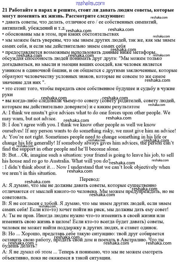 Решака - онлайн ответы Английский язык Афанасьева, Михеева за 10 класс Учебник Углубленный уровень ФГОС 2014 - 21