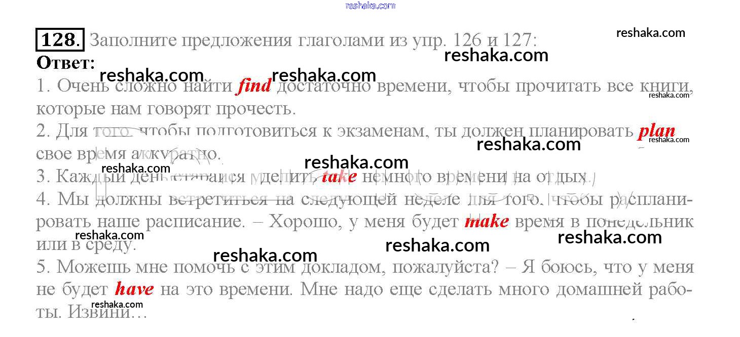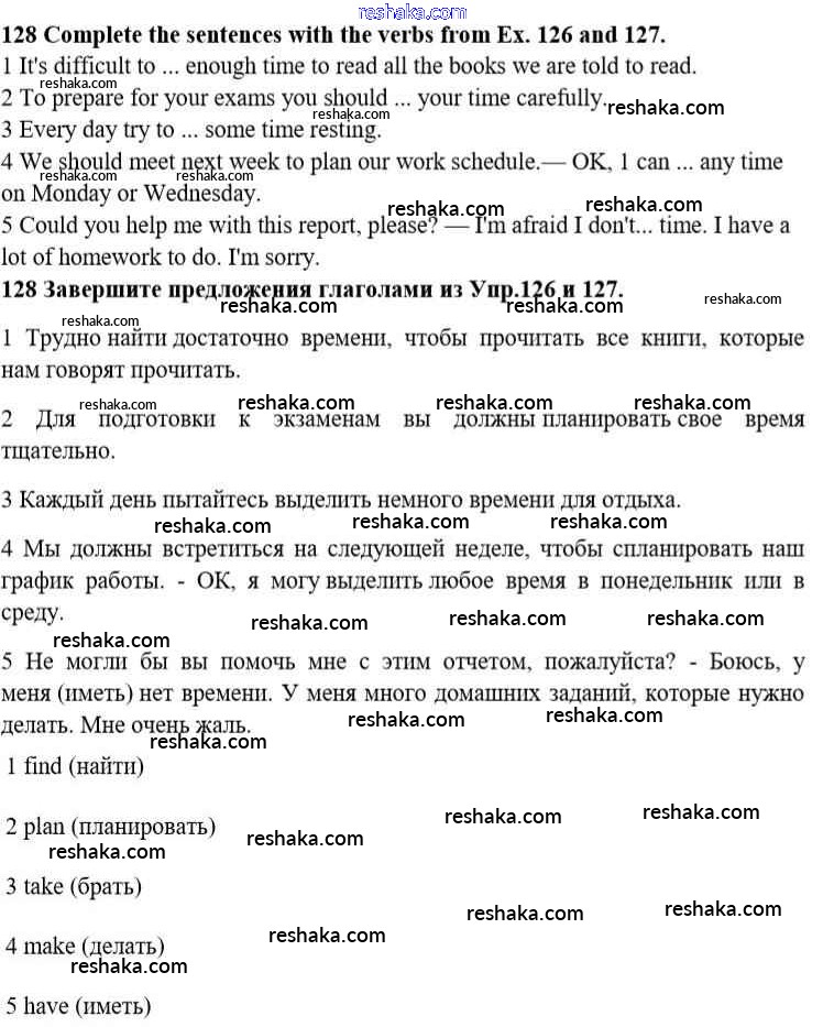 Представляем вам сборники по Английскому языку, с готовыми ответами к Учебнику Биболетова школьной программы для учеников десятый класса. Это не просто гдз с ответом, а с подсказками, как верно решить Unit 1. Start anew 128. Проверяй домашку с умом и получай высший балл!