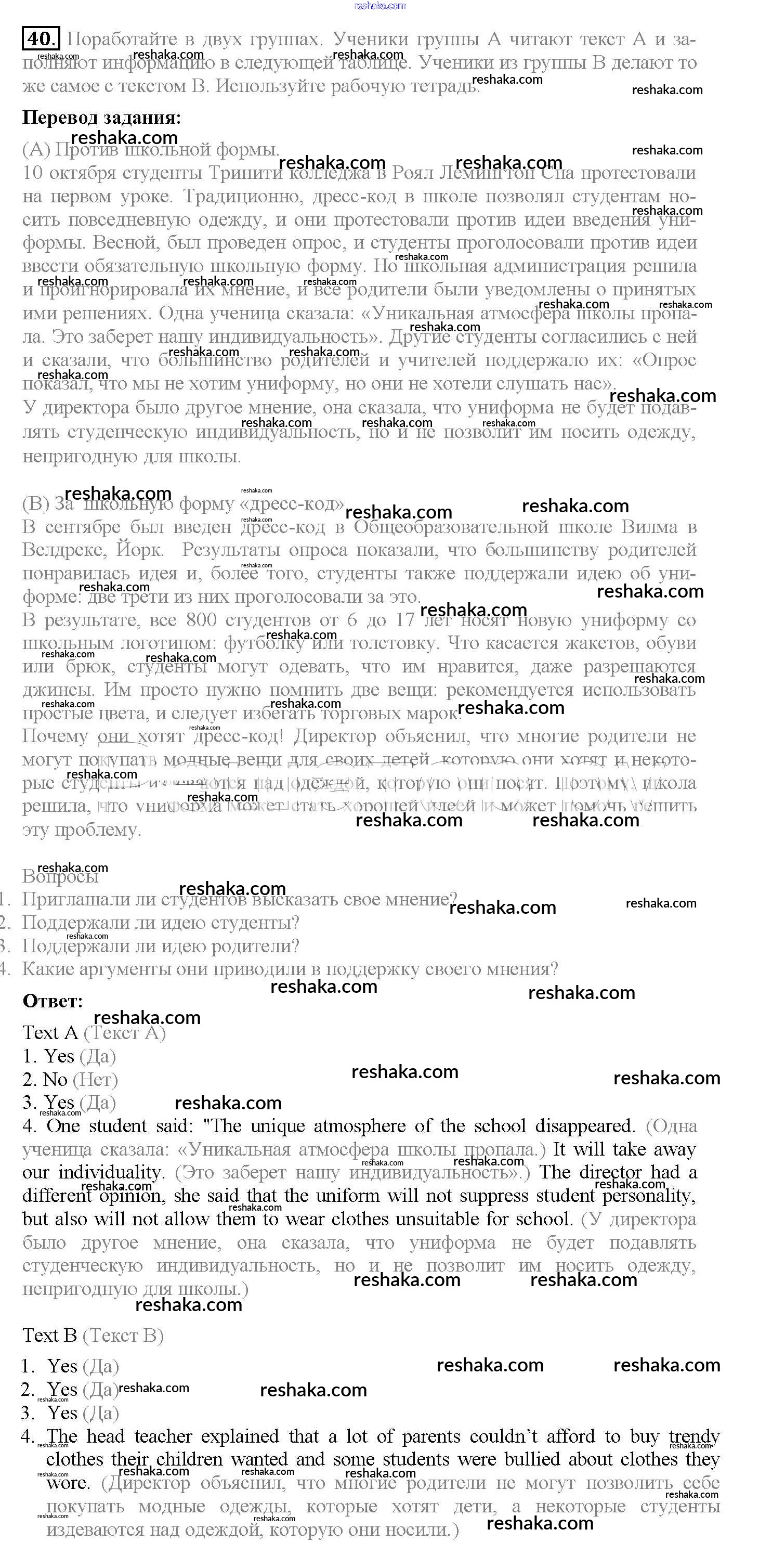 Решака - онлайн ответы Английский язык Биболетова, Денисенко за 10 класс Учебник ФГОС 2016 - 40