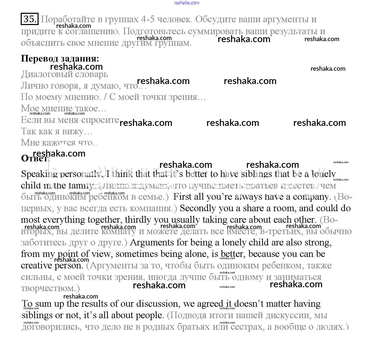 Представляем вам сборники по Английскому языку, с готовыми ответами к Учебнику Биболетова школьной программы для учеников десятый класса. Это не просто гдз с ответом, а с подсказками, как верно решить Unit 2. Talking on family matters 35. Проверяй домашку с умом и получай высший балл!
