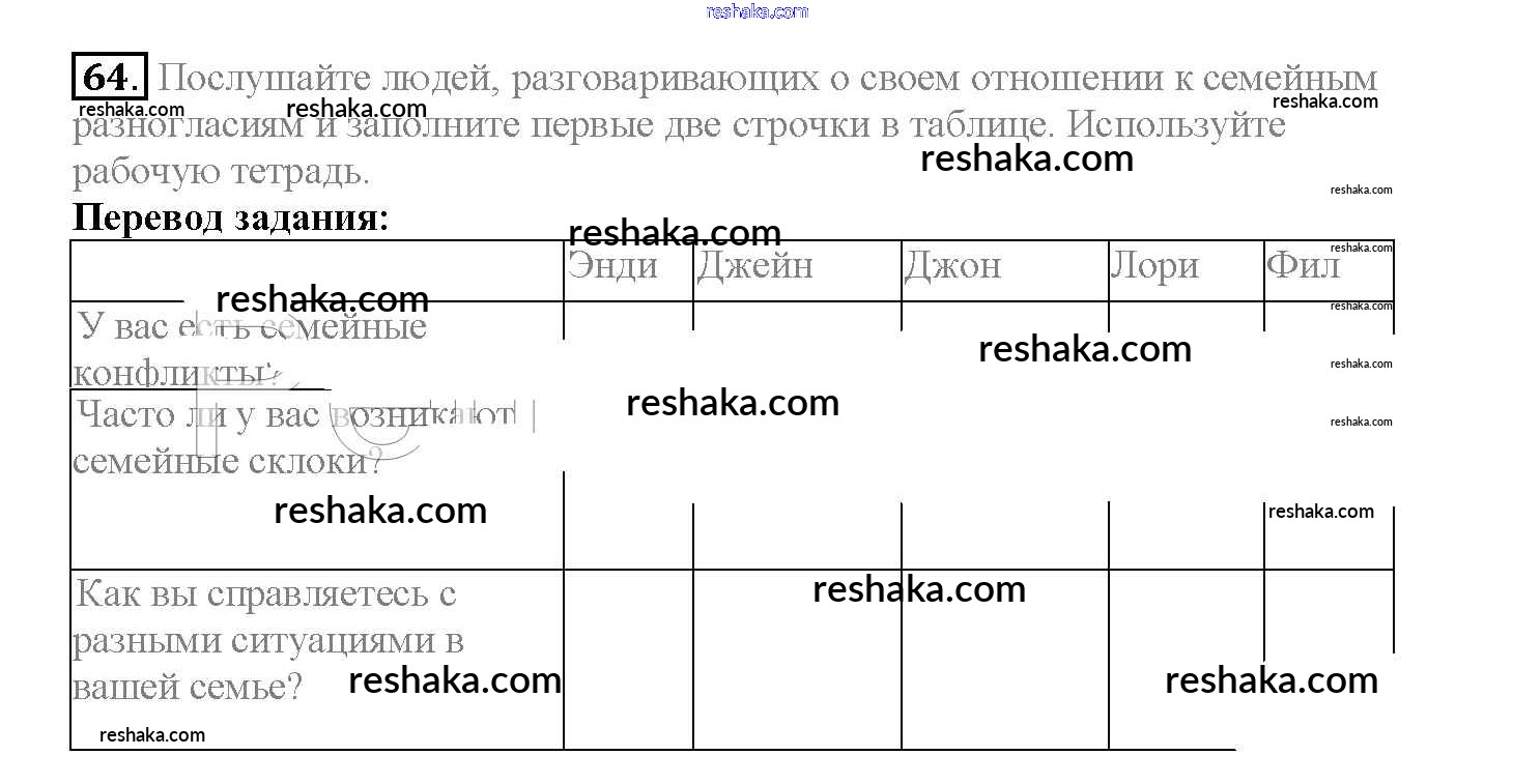 Представляем вам сборники по Английскому языку, с готовыми ответами к Учебнику Биболетова школьной программы для учеников десятый класса. Это не просто гдз с ответом, а с подсказками, как верно решить Unit 2. Talking on family matters 64. Проверяй домашку с умом и получай высший балл!