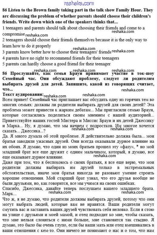 Решака - онлайн ответы Английский язык Биболетова, Денисенко за 10 класс Учебник ФГОС 2016 - 86