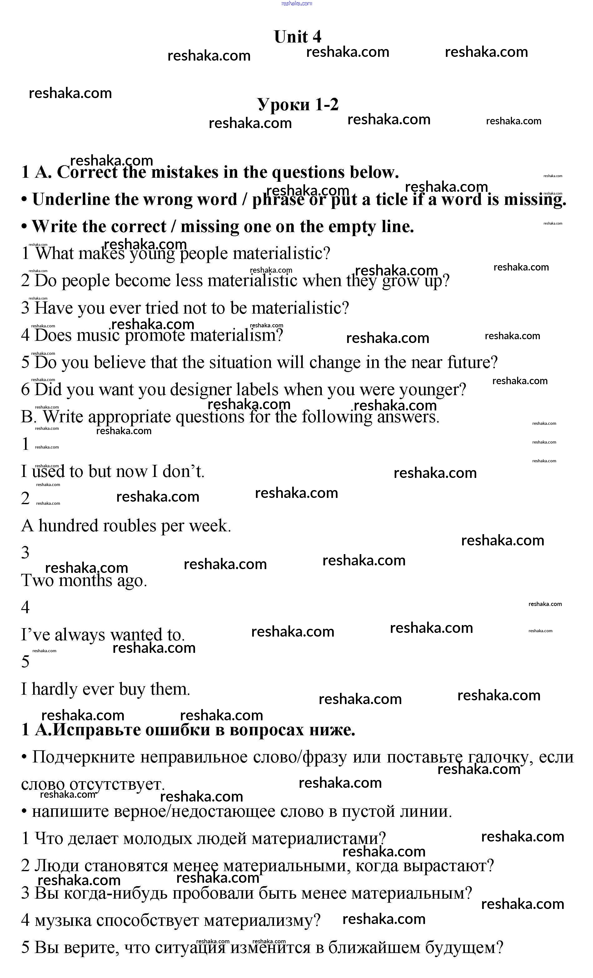 Представляем вам сборники по Английскому языку, с готовыми ответами к Рабочей тетради Гроза школьной программы для учеников десятый класса. Это не просто гдз с ответом, а с подсказками, как верно решить Уроки 1-2 Unit 4. The root of all evil? 1. Проверяй домашку с умом и получай высший балл!