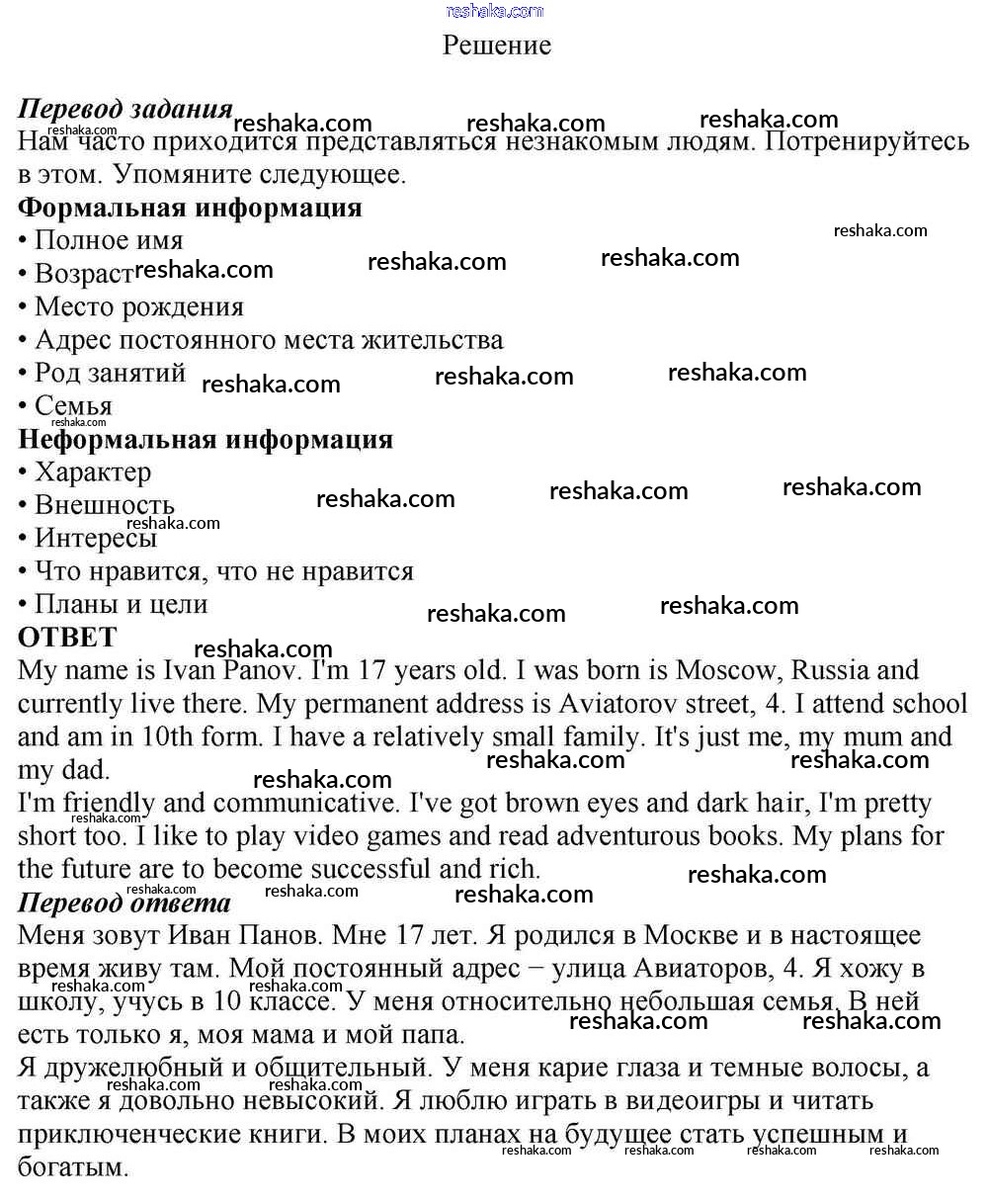 Решака - онлайн ответы Английский язык Афанасьева, Михеева за 10 класс Учебник Базовый уровень ФГОС 2016 - 1