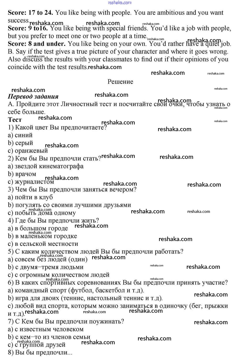 Решака - онлайн ответы Английский язык Афанасьева, Михеева за 10 класс Учебник Базовый уровень ФГОС 2016 - 2