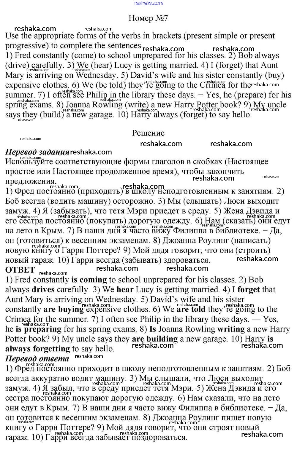 Решака - онлайн ответы Английский язык Афанасьева, Михеева за 10 класс Учебник Базовый уровень ФГОС 2016 - 7