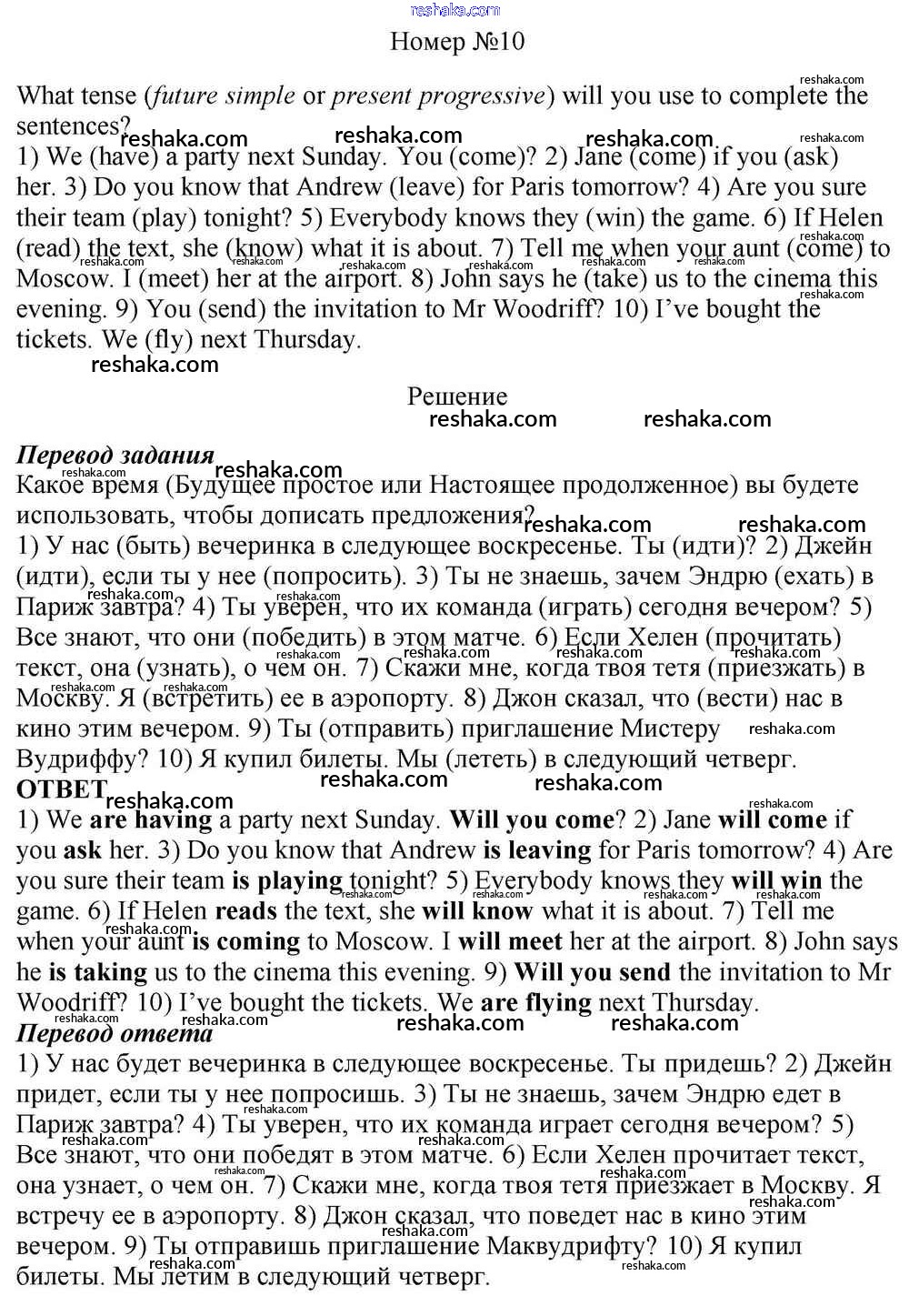 Решака - онлайн ответы Английский язык Афанасьева, Михеева за 10 класс Учебник Базовый уровень ФГОС 2016 - 10