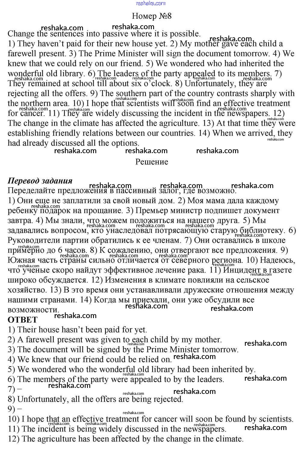 Решака - онлайн ответы Английский язык Афанасьева, Михеева за 10 класс Учебник Базовый уровень ФГОС 2016 - 8