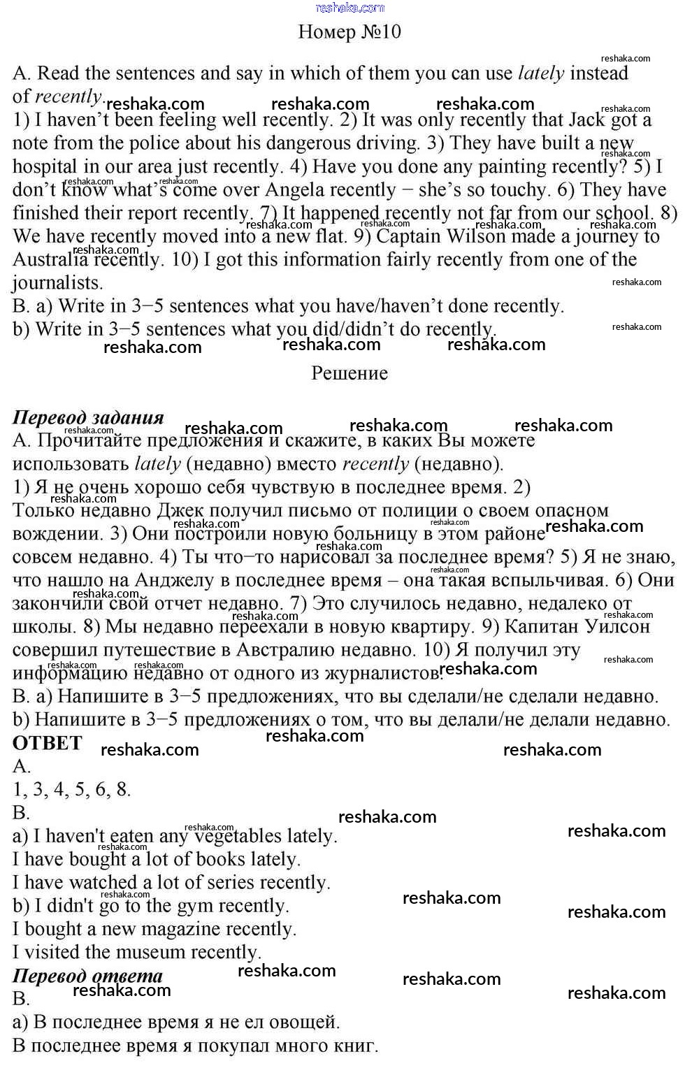Решака - онлайн ответы Английский язык Афанасьева, Михеева за 10 класс Учебник Базовый уровень ФГОС 2016 - 10