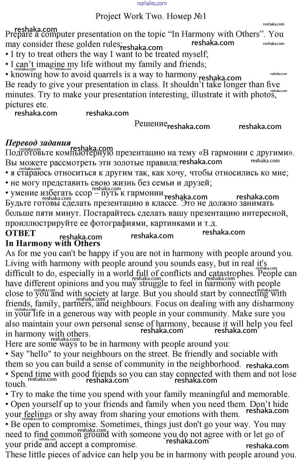 Представляем вам сборники по Английскому языку, с готовыми ответами к Учебнику Афанасьева школьной программы для учеников десятый класса. Это не просто гдз с ответом, а с подсказками, как верно решить Project Work Unit 2. In Harmony with Others 1. Проверяй домашку с умом и получай высший балл!