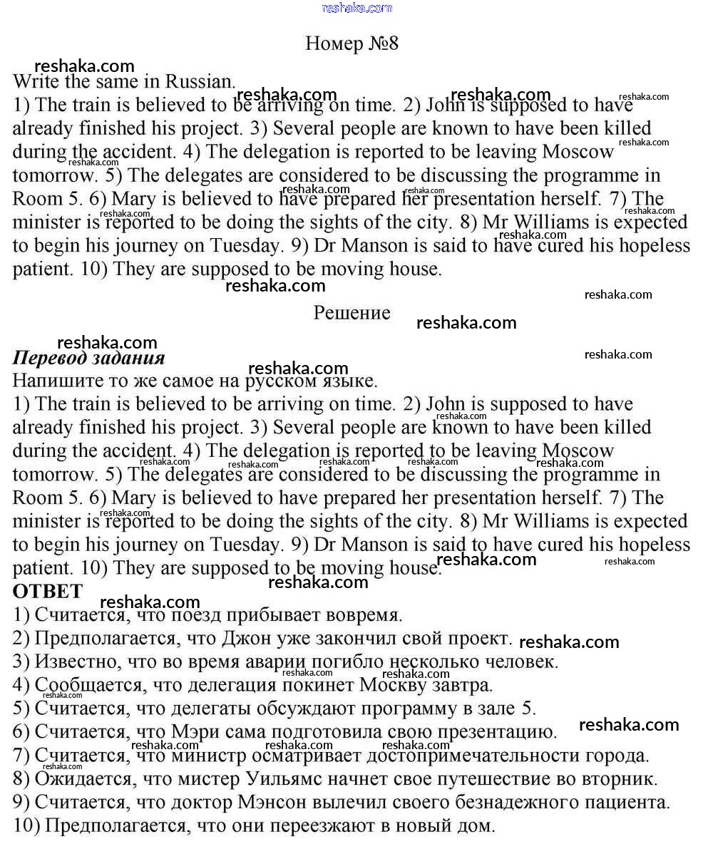 Решака - онлайн ответы Английский язык Афанасьева, Михеева за 10 класс Учебник Базовый уровень ФГОС 2016 - 8