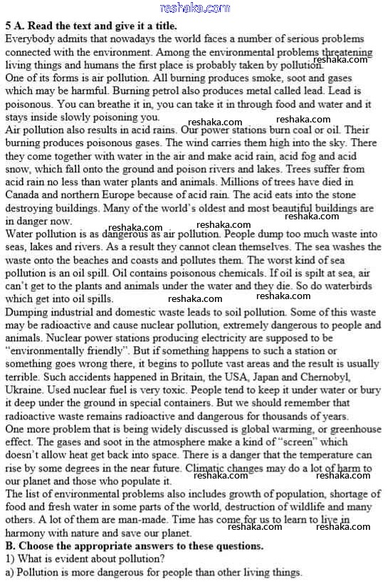 Решака - онлайн ответы Английский язык Афанасьева, Михеева за 10 класс Учебник Базовый уровень ФГОС 2016 - 5