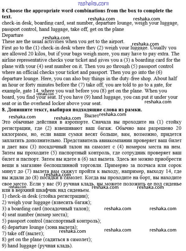 Решака - онлайн ответы Английский язык Афанасьева, Михеева за 10 класс Учебник Базовый уровень ФГОС 2016 - 8
