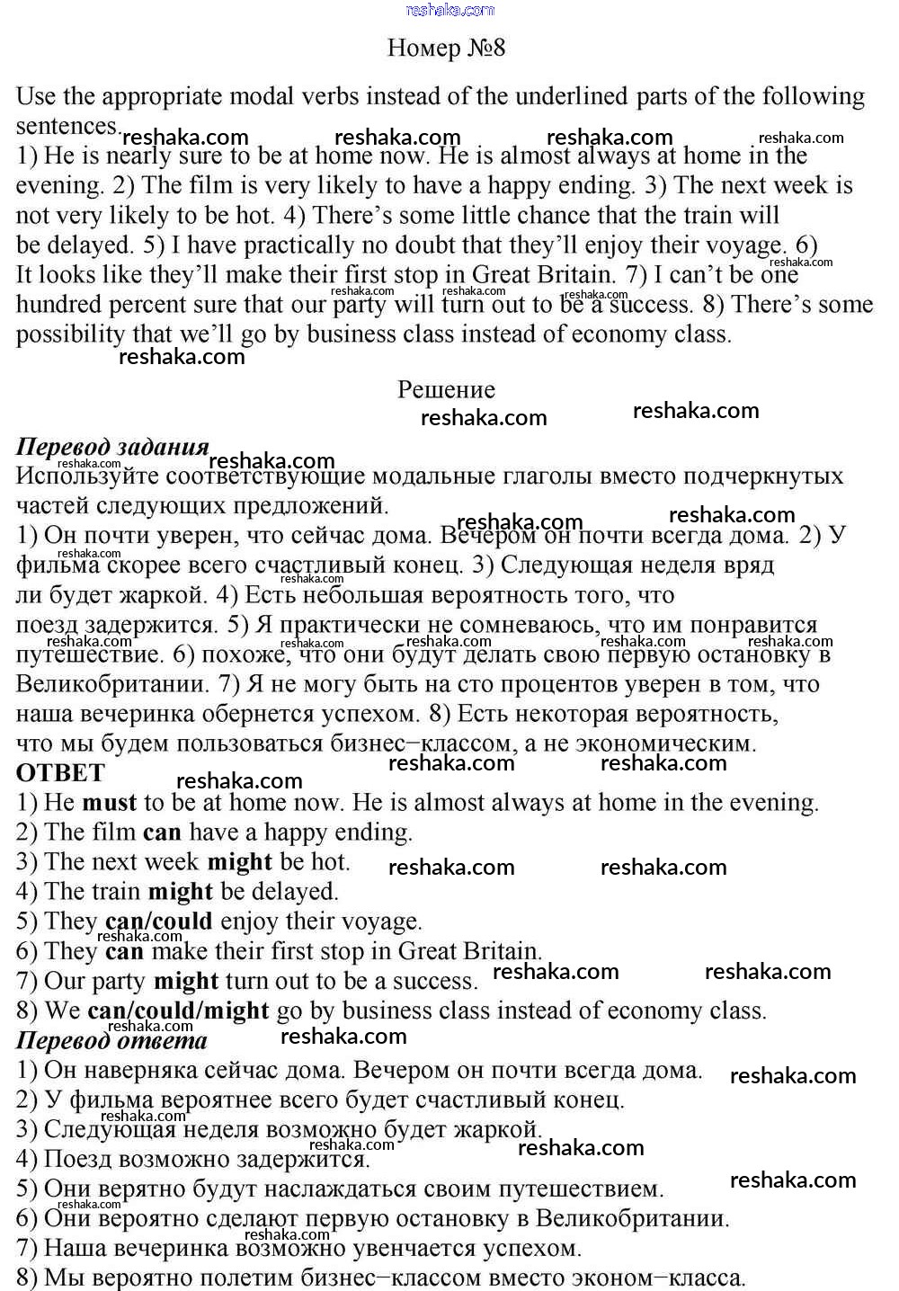 Решака - онлайн ответы Английский язык Афанасьева, Михеева за 10 класс Учебник Базовый уровень ФГОС 2016 - 8