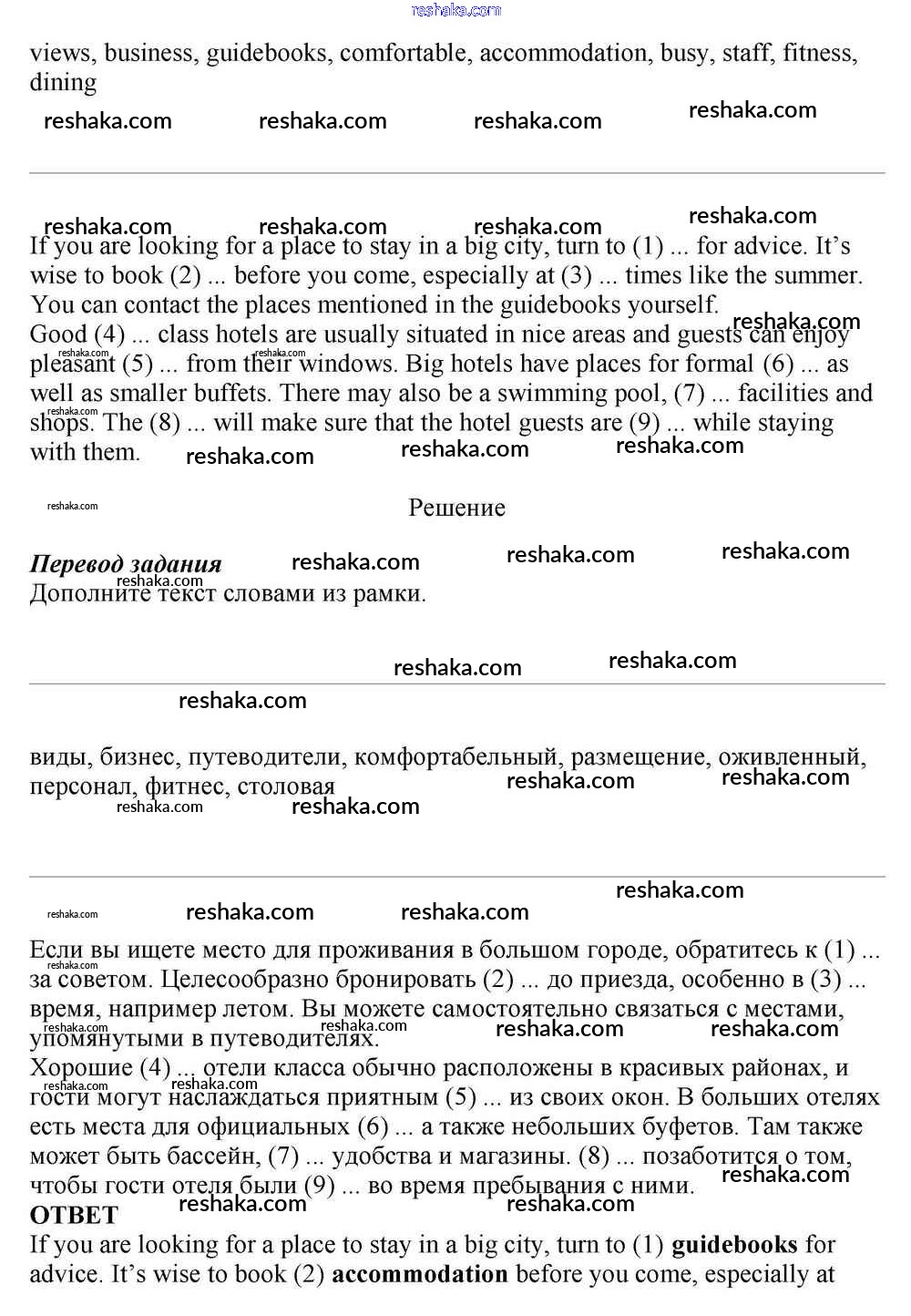 Решака - онлайн ответы Английский язык Афанасьева, Михеева за 10 класс Учебник Базовый уровень ФГОС 2016 - 9
