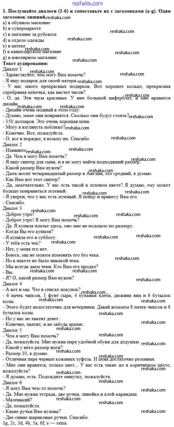 Решака - онлайн ответы Английский язык Афанасьева, Михеева за 10 класс Учебник Базовый уровень ФГОС 2016 - 1