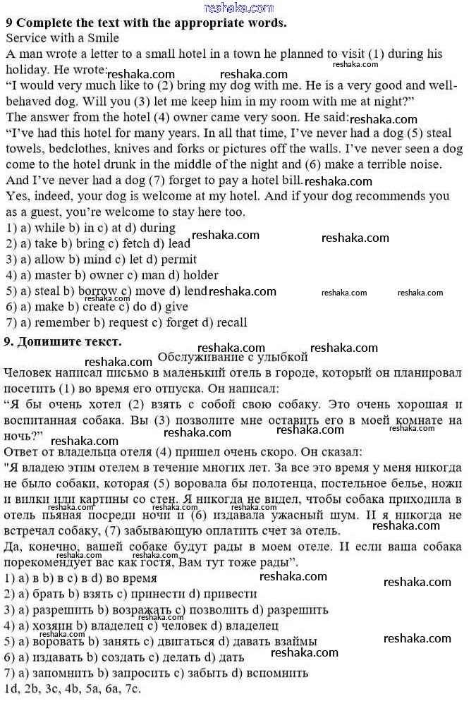 Решака - онлайн ответы Английский язык Афанасьева, Михеева за 10 класс Учебник Базовый уровень ФГОС 2016 - 9