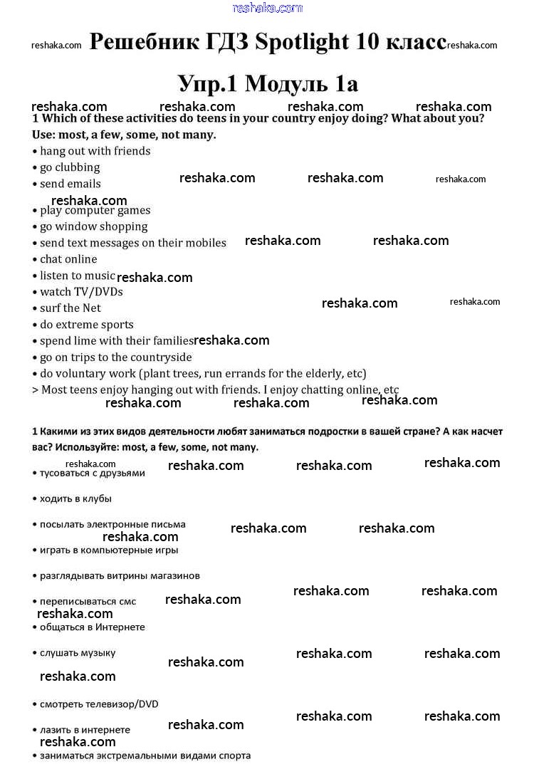Решака - онлайн ответы Английский язык Афанасьева, Дули за 10 класс Учебник ФГОС 2015 - 1