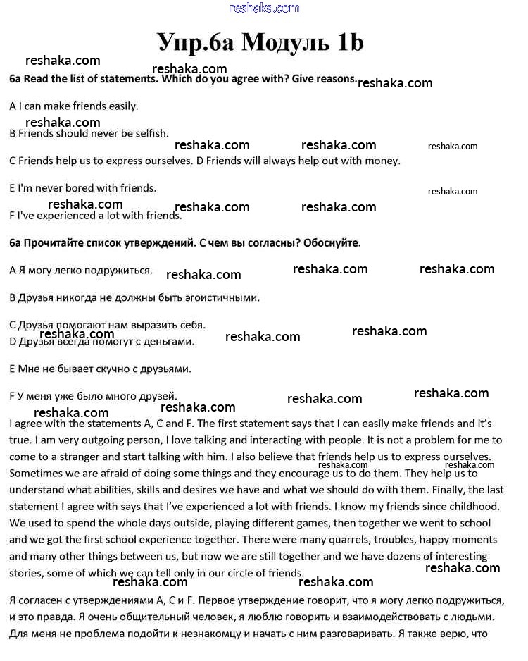 Представляем вам сборники по Английскому языку, с готовыми ответами к Учебнику Афанасьева школьной программы для учеников десятый класса. Это не просто гдз с ответом, а с подсказками, как верно решить Часть 1b Module 1 6a. Проверяй домашку с умом и получай высший балл!