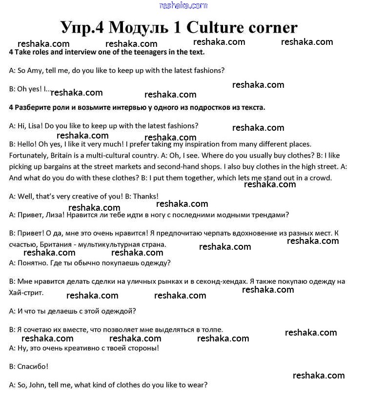 Решака - онлайн ответы Английский язык Афанасьева, Дули за 10 класс Учебник ФГОС 2015 - 4