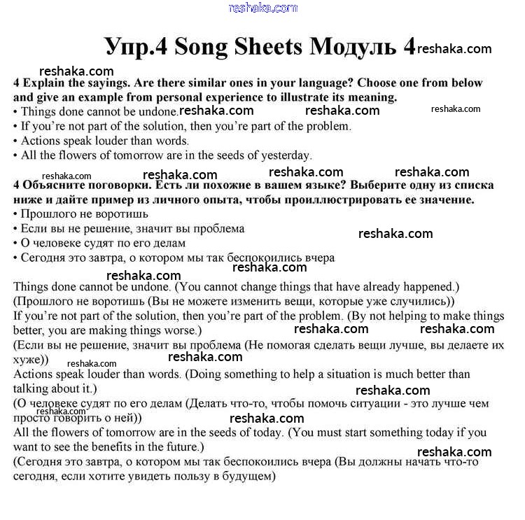 Представляем вам сборники по Английскому языку, с готовыми ответами к Учебнику Афанасьева школьной программы для учеников десятый класса. Это не просто гдз с ответом, а с подсказками, как верно решить Module 4 Song Sheets 4. Проверяй домашку с умом и получай высший балл!