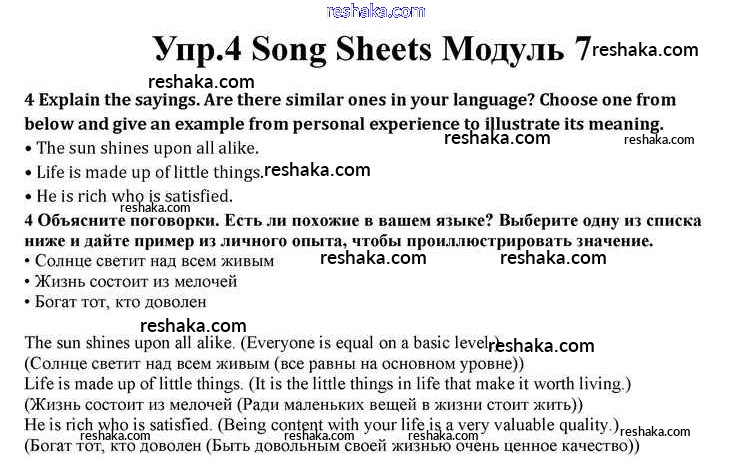 Представляем вам сборники по Английскому языку, с готовыми ответами к Учебнику Афанасьева школьной программы для учеников десятый класса. Это не просто гдз с ответом, а с подсказками, как верно решить Module 7 Song Sheets 4. Проверяй домашку с умом и получай высший балл!