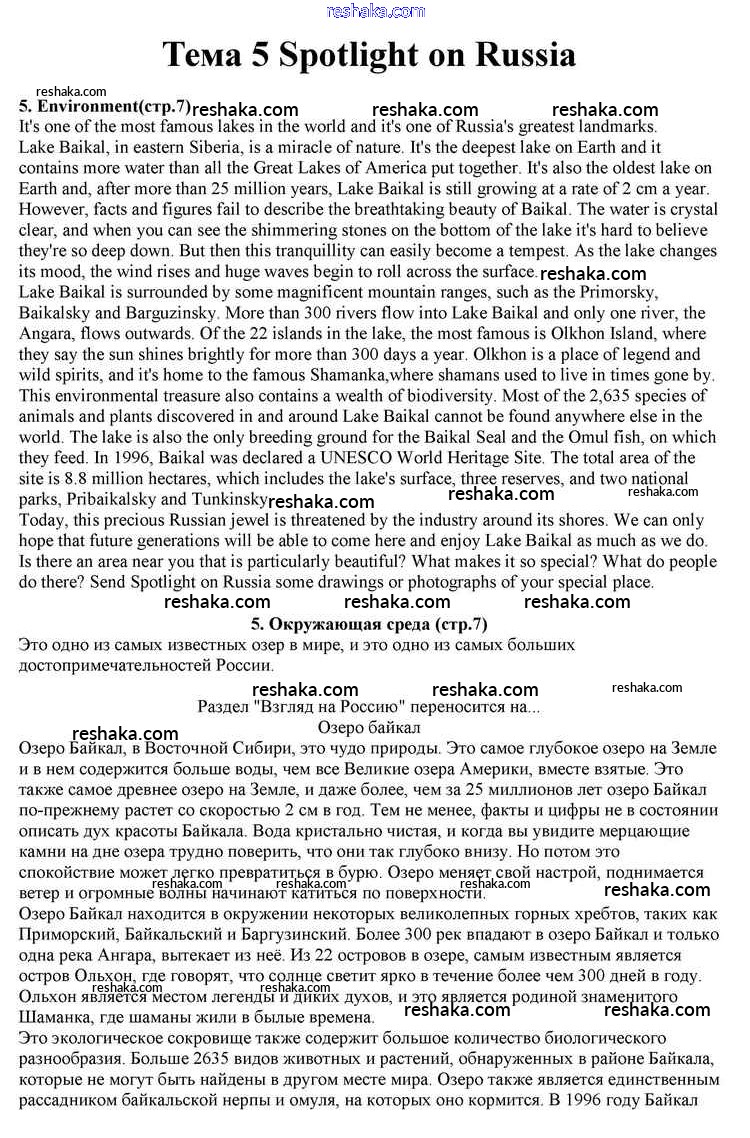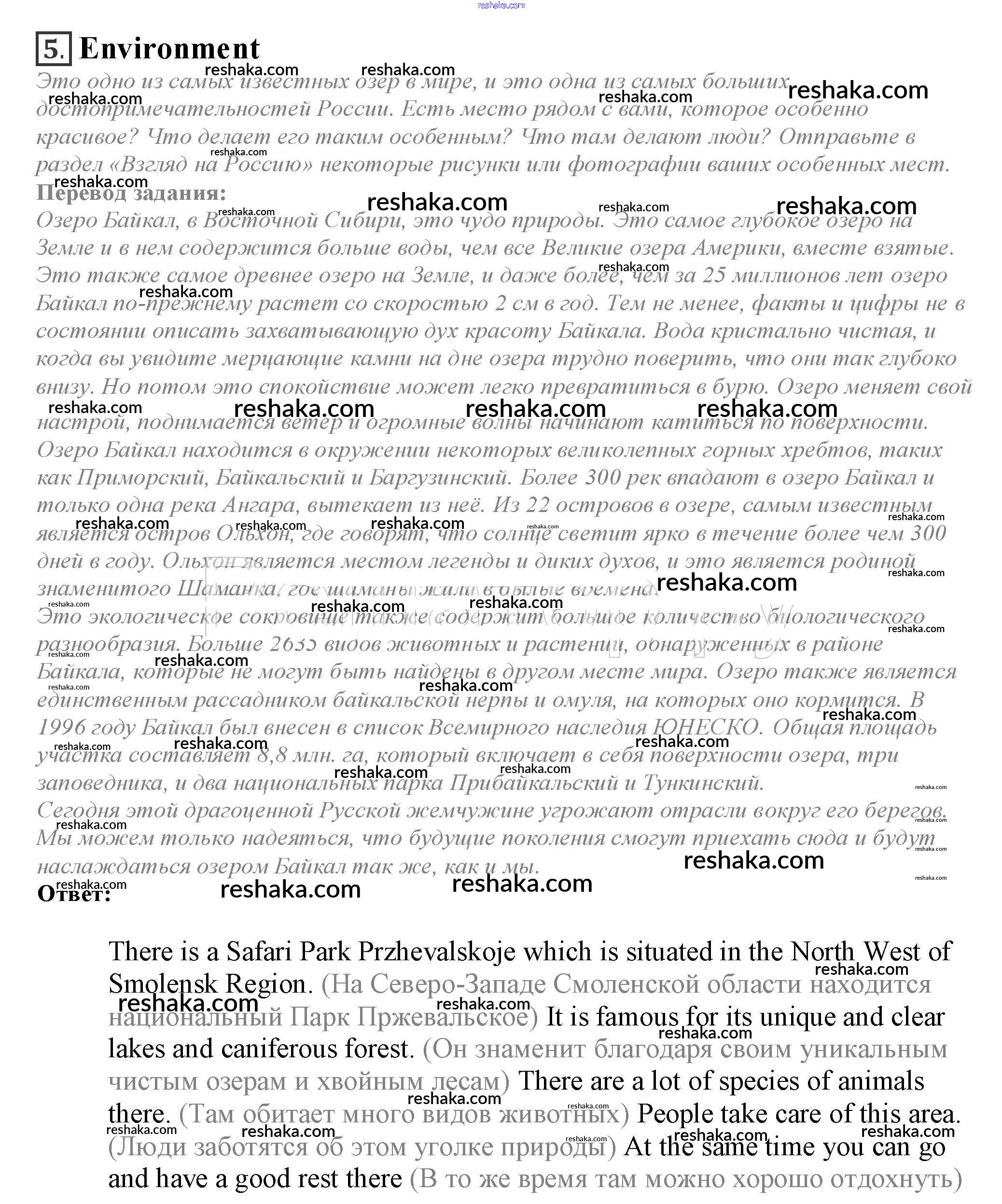 Решака - онлайн ответы Английский язык Афанасьева, Дули за 10 класс Учебник ФГОС 2015 - 5. Environment