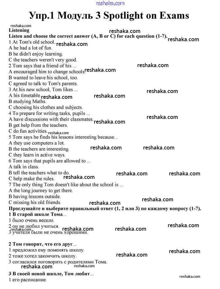 Представляем вам сборники по Английскому языку, с готовыми ответами к Учебнику Афанасьева школьной программы для учеников десятый класса. Это не просто гдз с ответом, а с подсказками, как верно решить Spotlight on Exams Module 3 1. Проверяй домашку с умом и получай высший балл!