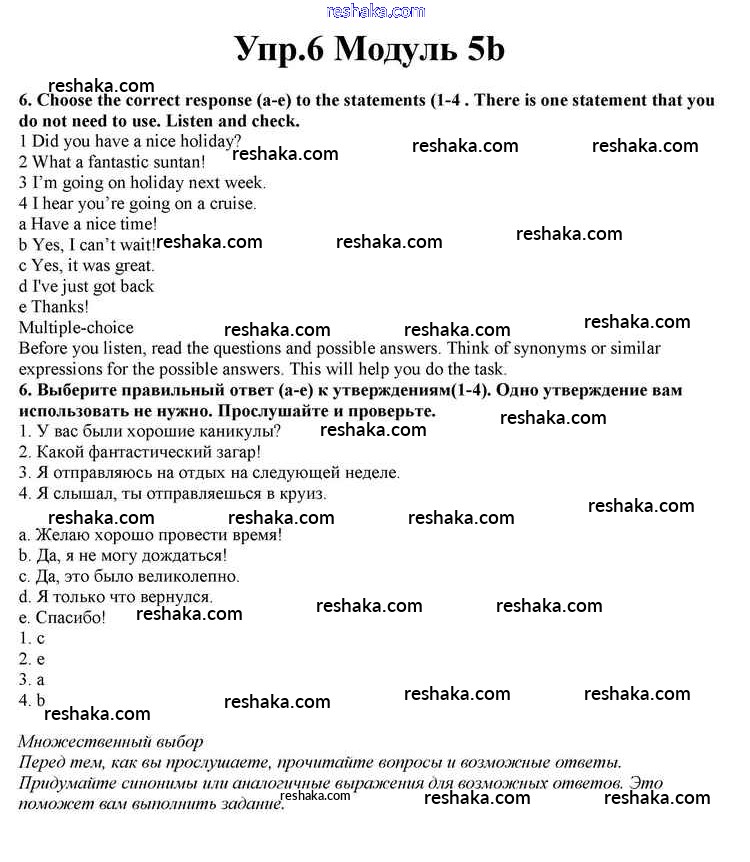 Решака - онлайн ответы Английский язык Афанасьева, Дули за 10 класс Учебник ФГОС 2015 - 6