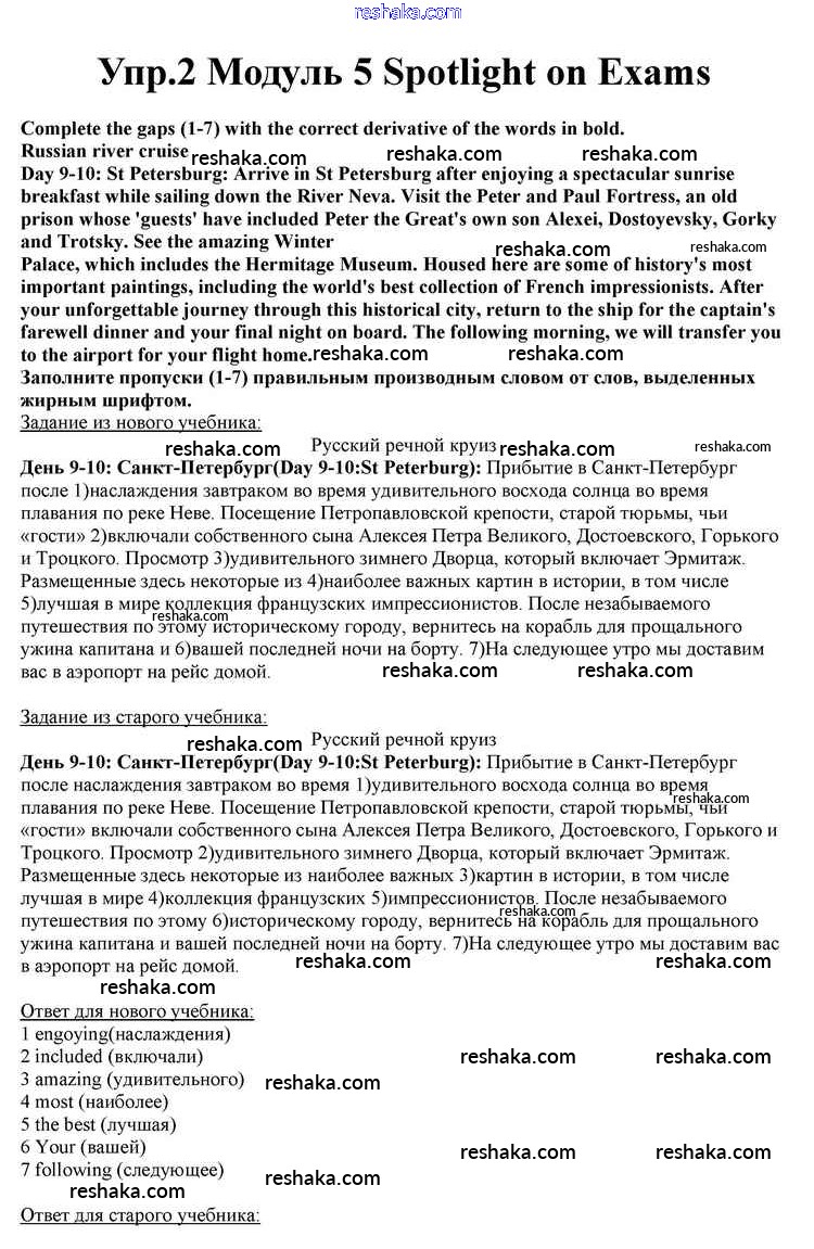 Представляем вам сборники по Английскому языку, с готовыми ответами к Учебнику Афанасьева школьной программы для учеников десятый класса. Это не просто гдз с ответом, а с подсказками, как верно решить Spotlight on Exams Module 5 2. Проверяй домашку с умом и получай высший балл!