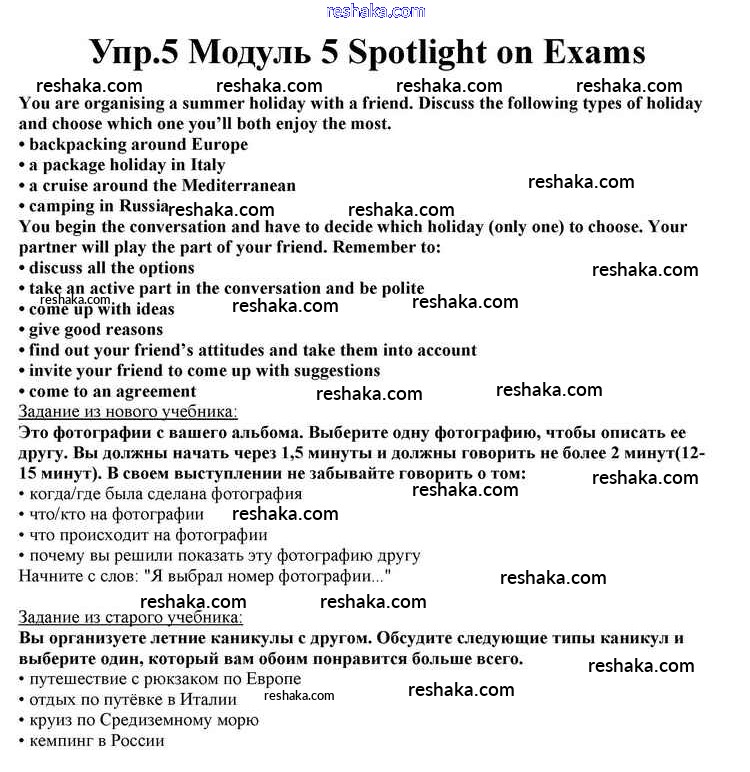 Представляем вам сборники по Английскому языку, с готовыми ответами к Учебнику Афанасьева школьной программы для учеников десятый класса. Это не просто гдз с ответом, а с подсказками, как верно решить Spotlight on Exams Module 5 5. Проверяй домашку с умом и получай высший балл!