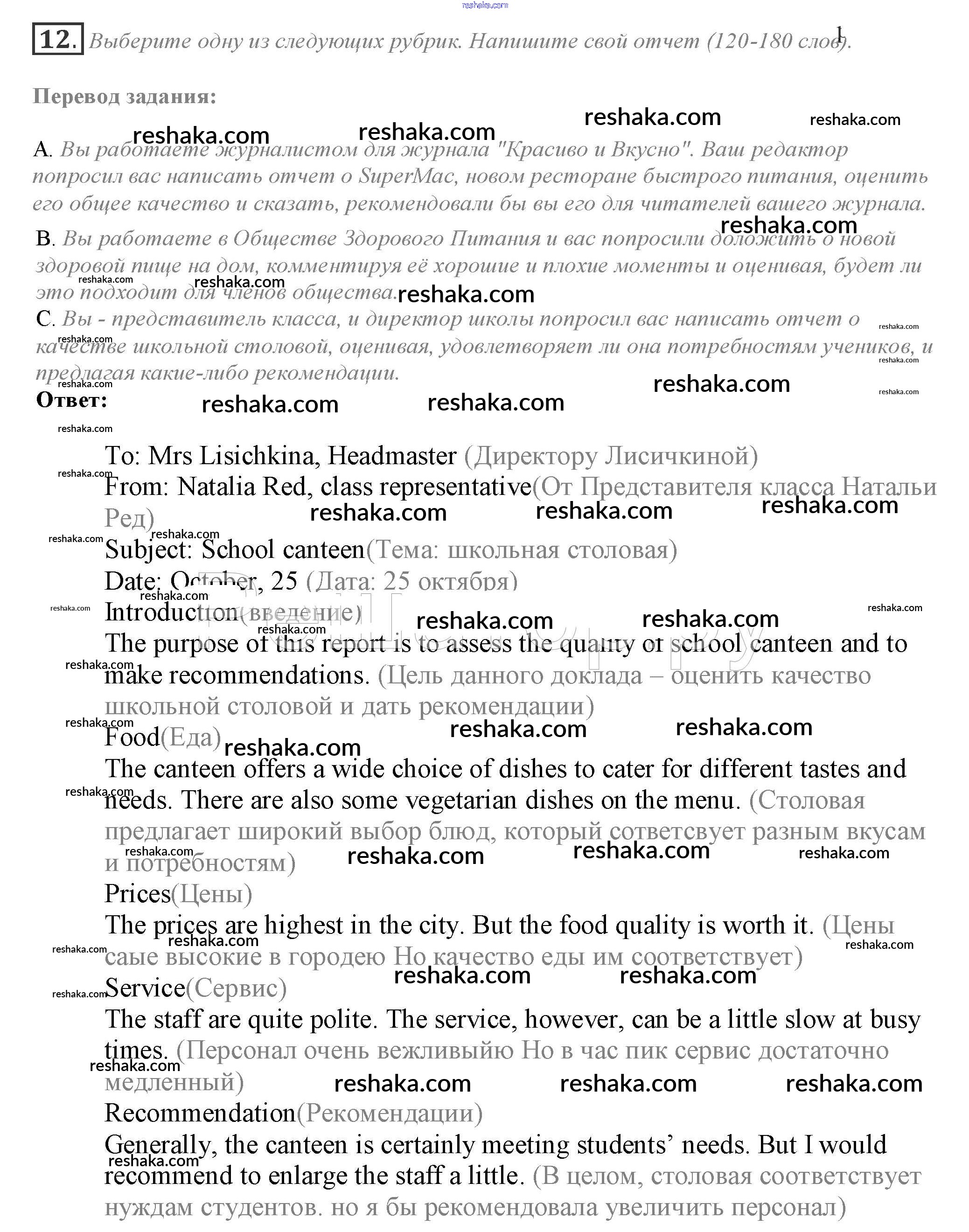 Решака - онлайн ответы Английский язык Афанасьева, Дули за 10 класс Учебник ФГОС 2015 - 12a