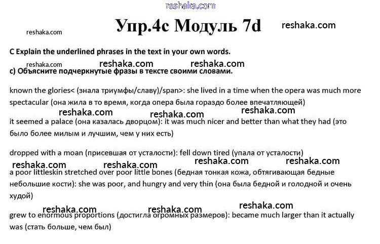 Представляем вам сборники по Английскому языку, с готовыми ответами к Учебнику Афанасьева школьной программы для учеников десятый класса. Это не просто гдз с ответом, а с подсказками, как верно решить Часть 7d Module 7 4c. Проверяй домашку с умом и получай высший балл!